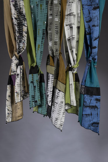 Scarves / These make a wonderful accessory to any outfit. Silk chiffon appliquéd with bright squares of color.